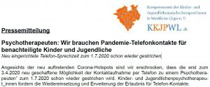 Das Kompetenznetz KJP WL ist aktiv geworden und hat diesen Missstand über unseren KJP-Vertreter Oliver Staniszewski an die Bundespsychotherapeutenkammer heran getragen. Sonst wäre es dort nicht aufgefallen.