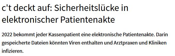 Infos zur Elektronischen Patientenakte auch hier und hier (interne Links)