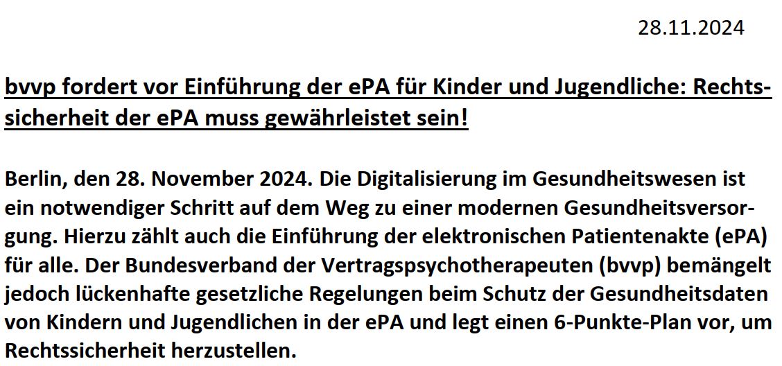 ePA bei Patient*innen unter 15 Jahren nicht befüllen, „sofern dem erhebliche therapeutische Gründe entgegenstehen“ und wenn „gewichtige Anhaltspunkte für die Gefährdung des Wohles eines Kindes oder Jugendlichen vorliegen“. Vermerk dazu in Behandlungsdokumentation verpflichtend