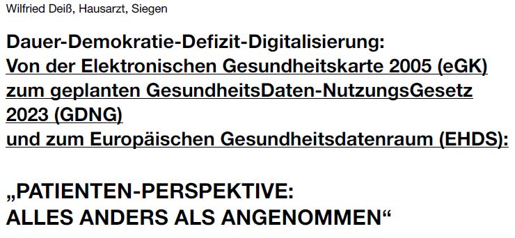 Dr. Andreas Meissner, der die Petition gegen die elektronische Patientenakte erfolgreich auf den Weg gebracht hatte, auf Youtube – ein wirklich empfehlenswerter (30min. Vortrag & 30min. Fragen) – für sämtliche BehandlerInnen, egal ob mit oder ohne TI-Anschluss und für interessierte Paitent:innen:
