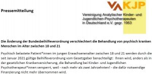 Bundesbeihilfe verschlechtert psychotherapeutische Versorgung von jungen Erwachsenen