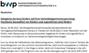 Aus Sorge um die Entwicklungen im Bereich psychischer Belastungen wird von vier Vertretern des Kompetenznetzes Westfalen Lippe der Kinder- und JugendpsyotherapeutInnen darauf hingewiesen, dass die Praxen für Kinder- und Jugendliche geöffnet bleiben. Unter Einhaltung der Hygienemaßnahmen und Abstandsregeln gilt die Weiterführung von Psychotherapie für Kinder, Jugendliche und ihre Familien als medizinische Grundversorgung.